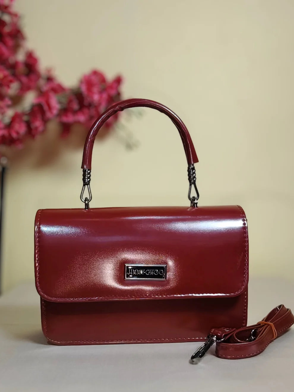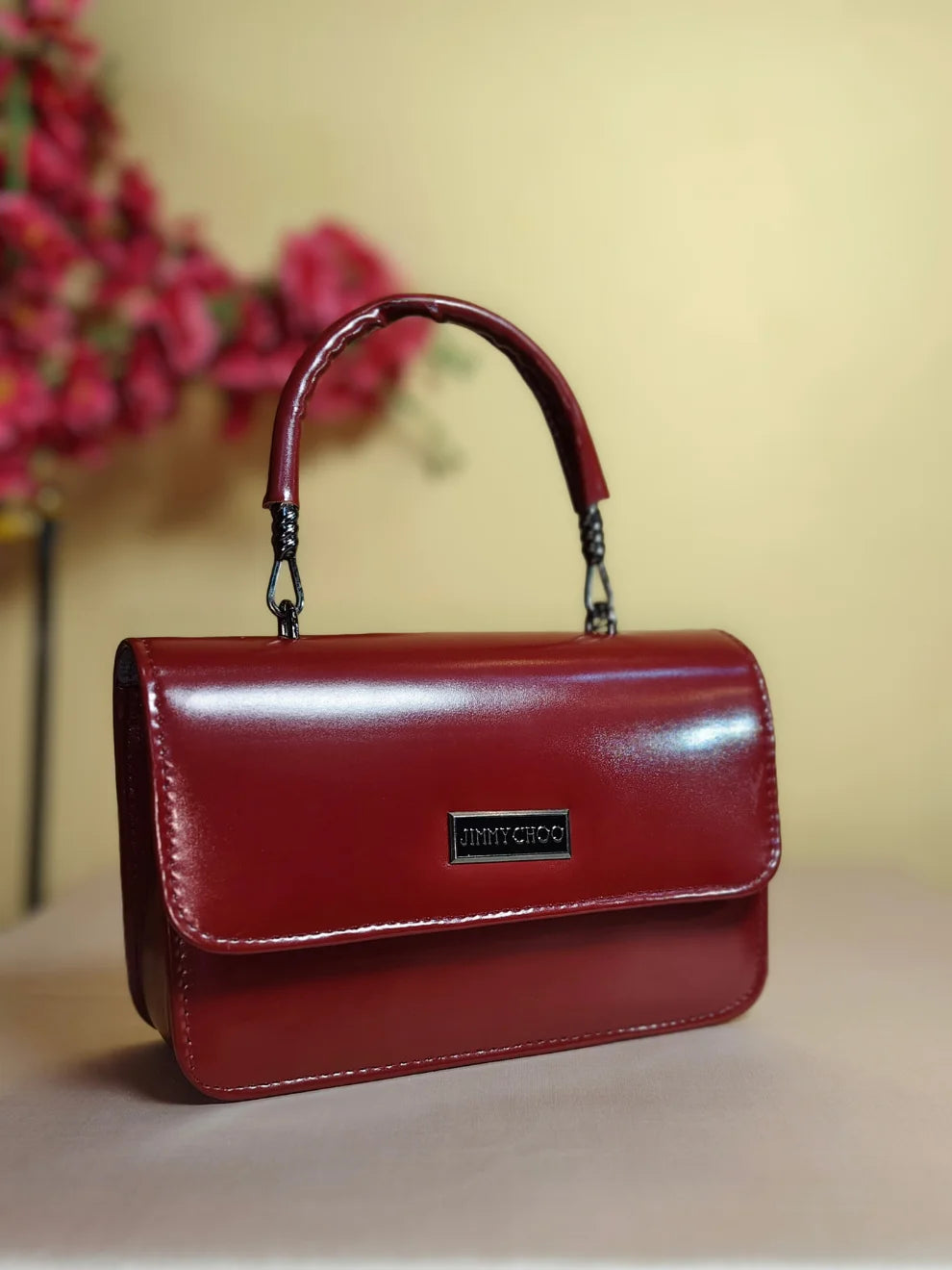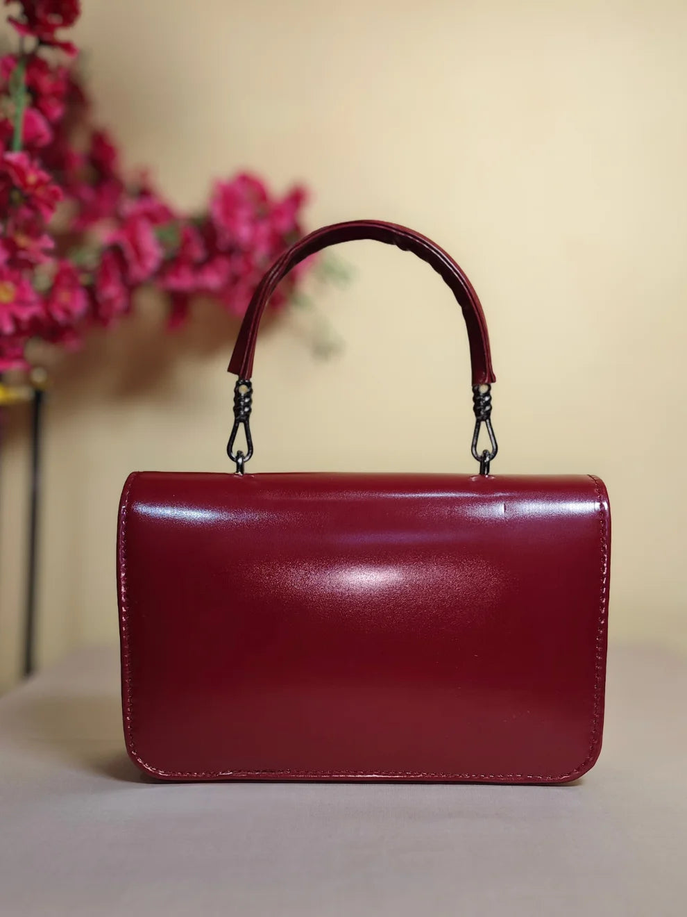 - Elegant top handle for a classic handbag carry.