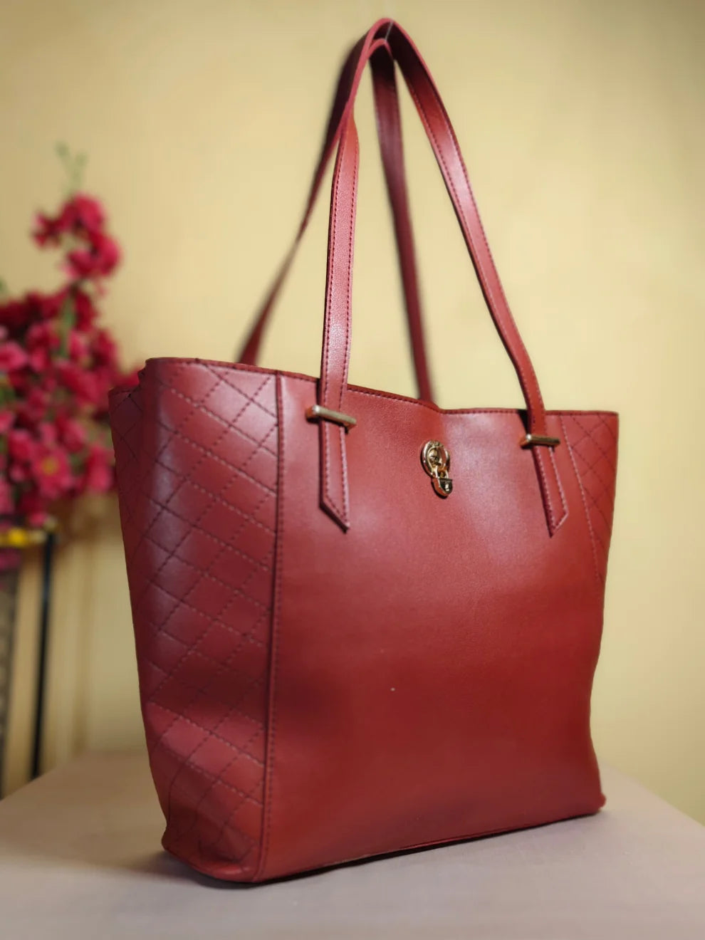 - Featuring quilted side panels and gold-tone hardware, this spacious tote adds a touch of luxury to your daily essentials