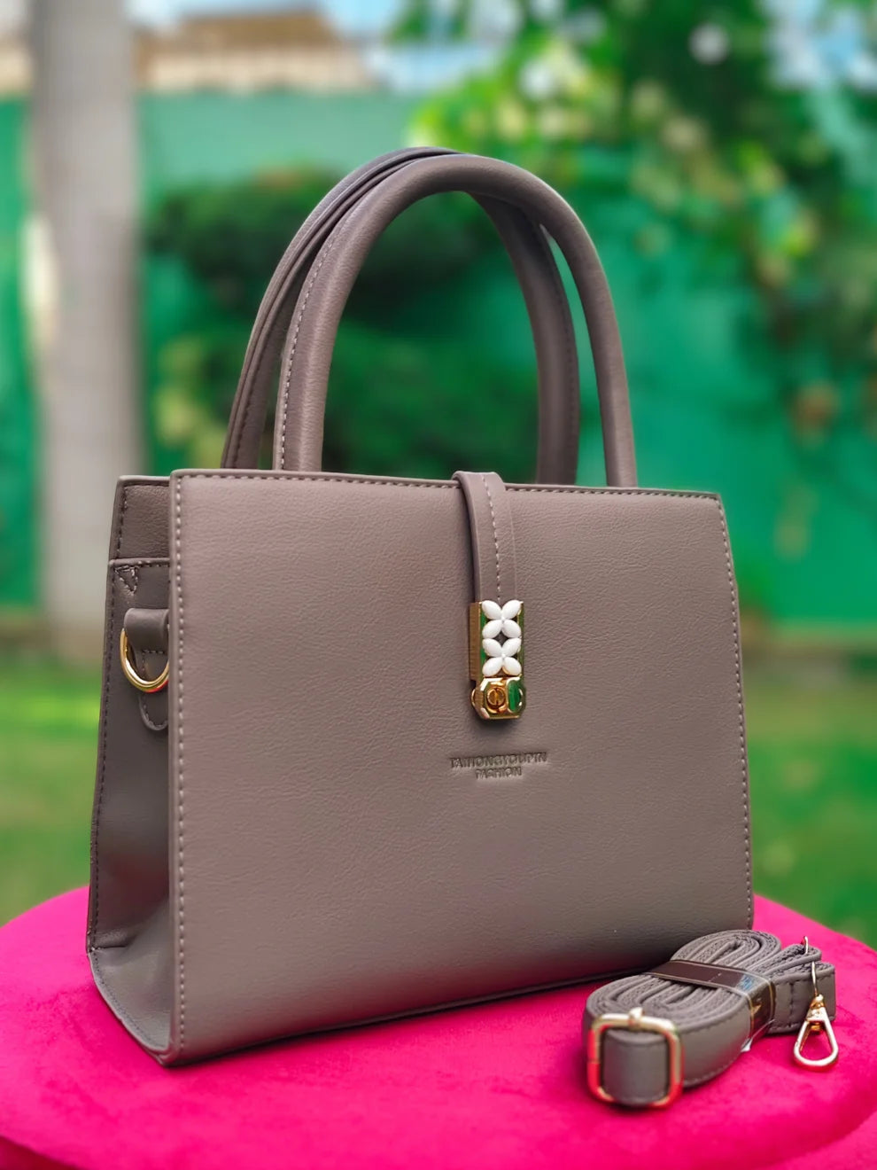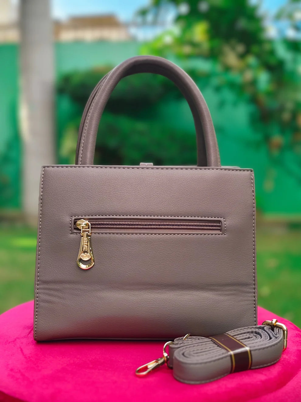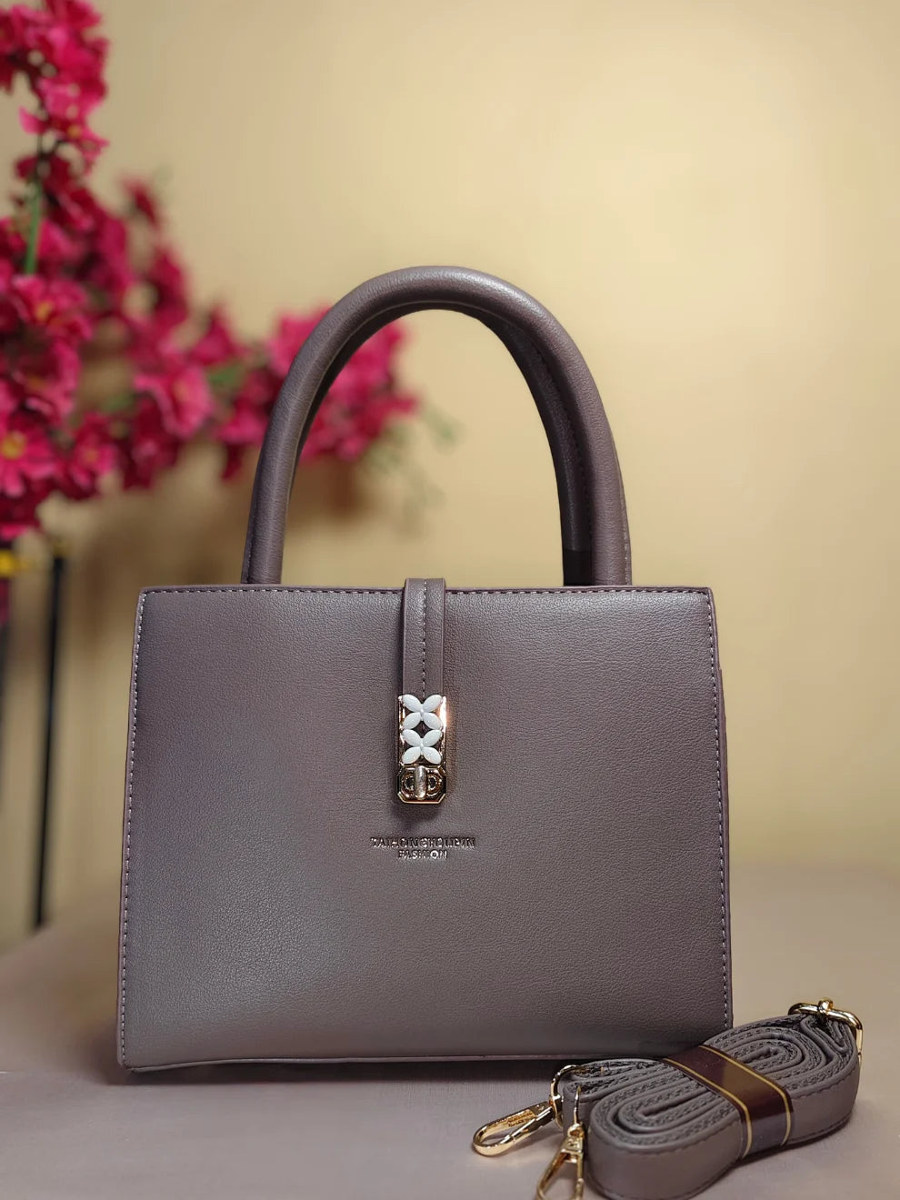 - Imported design with clean lines, a subtle matte finish, and a refined metal clasp accent.